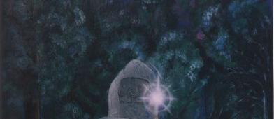 Looking into my past I was intrigued by my ancient roots to a Celtic ancestry. Having read a number of books that delved into Druidic philosophy and practices I was taken by the depth of respect for sacred places, especially as related to groves of trees. Additionally, there seemed to have been a greater balance with the feminine energies of nature than we have today. In this painting I wished to capture this feminine spirit of reverence for the sacredness of Earth.The grove lined with ancient stones commemorating a connection with the past seemed the ideal setting for a Celtic theme. As well, evening is my favorite time of day and it represents the meeting of two worlds, of light and dark and the balance between.
