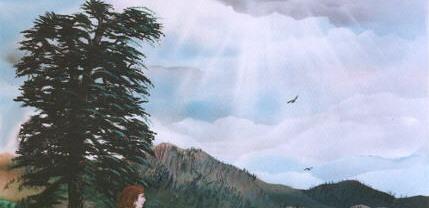 My family owns a ranch in the Methow Valley of north-central Washington state. On our property is a high mountain that looks down upon the valley and the local community of Twisp. The high mountain refuge is so peaceful and calm that we have come to call it "heaven." On the promontory of one of the peaks is an ancient pine that has weathered time and nature's tribulations. It is a favorite spot for contemplation and letting your spirit soar.Our family holds the spot of the Lone Pine as a sacred place. Indeed it is the place in which my sister's ashes were scattered after her death. Most family members have requested that their ashes too be placed there. When a visitor comes to sit and meditate at the spot they bring a rock to add to the pile of remembrances.