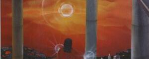 Within the sun image of the painting I incorporate the "seed of life" sacred geometry symbol for we are living in a time when the previously hidden wisdom of the geometric patterns that hold the interconnectivity of all things are now being revealed. All things, from the smallest cell to the largest galaxy are connected with a consistent pattern of molecular structure and energy patterns that ties us into the divine construct of God.