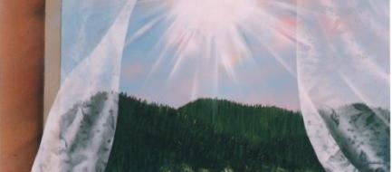 This painting, rich in spiritual symbolism, depicts our opening up to receive the full spirit of Gods love. The barrier that separates us from our own divinity is removed and love gently settles in to illuminate our life.